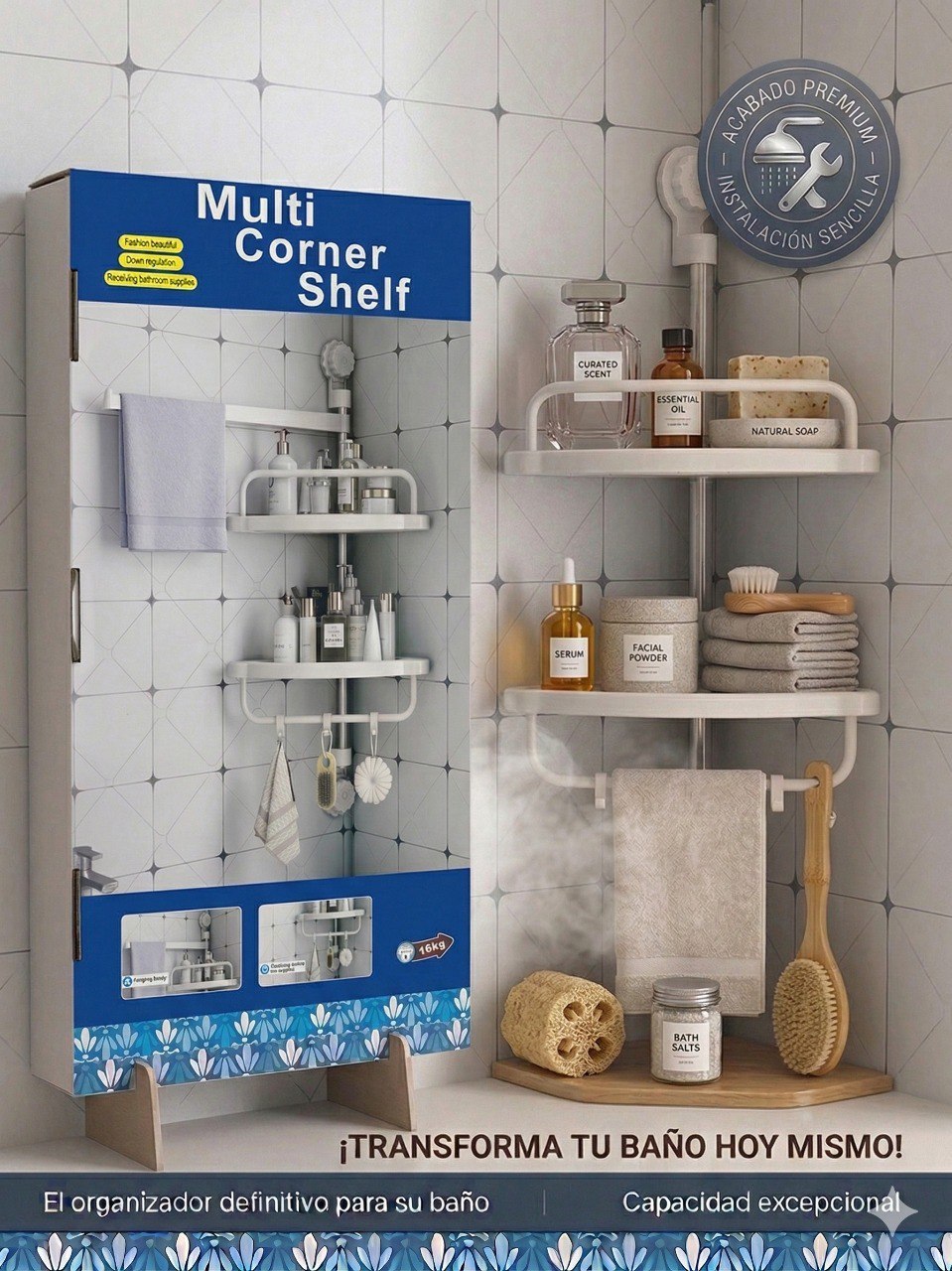 Estante Esquinero de Tensión - Organiza tu Baño