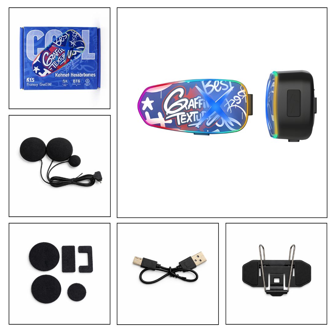 Lleva tu experiencia en moto a otro nivel con el K15 Graffiti Motorcycle Headset, un intercomunicador moderno que combina tecnología, estilo y seguridad. Su diseño con grafiti y luces LED lo hace único, ideal para motociclistas que buscan destacar en la carretera.