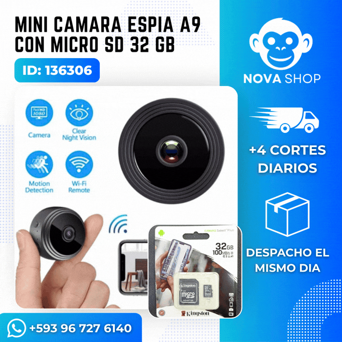 ¿Buscas una forma discreta, práctica y eficiente de vigilar tu hogar, oficina o cualquier espacio importante? La Mini Cámara Espía A9 WiFi HD es la solución ideal para mantener el control desde cualquier lugar. Su diseño compacto y moderno permite colocarla fácilmente sin llamar la atención, mientras su conexión WiFi te brinda acceso en tiempo real desde tu celular. Además, incluye una memoria Micro SD de 32GB para que empieces a grabar desde el primer momento.