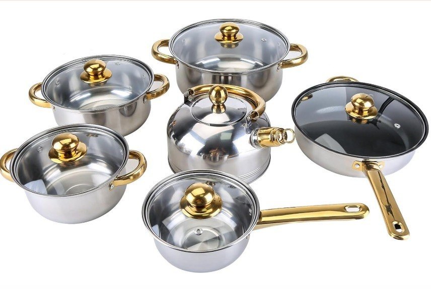 Equipa tu cocina como un profesional con este set de ollas 12 piezas: elegancia, durabilidad y cocción uniforme para preparar tus mejores recetas con estilo 👩🍳✨