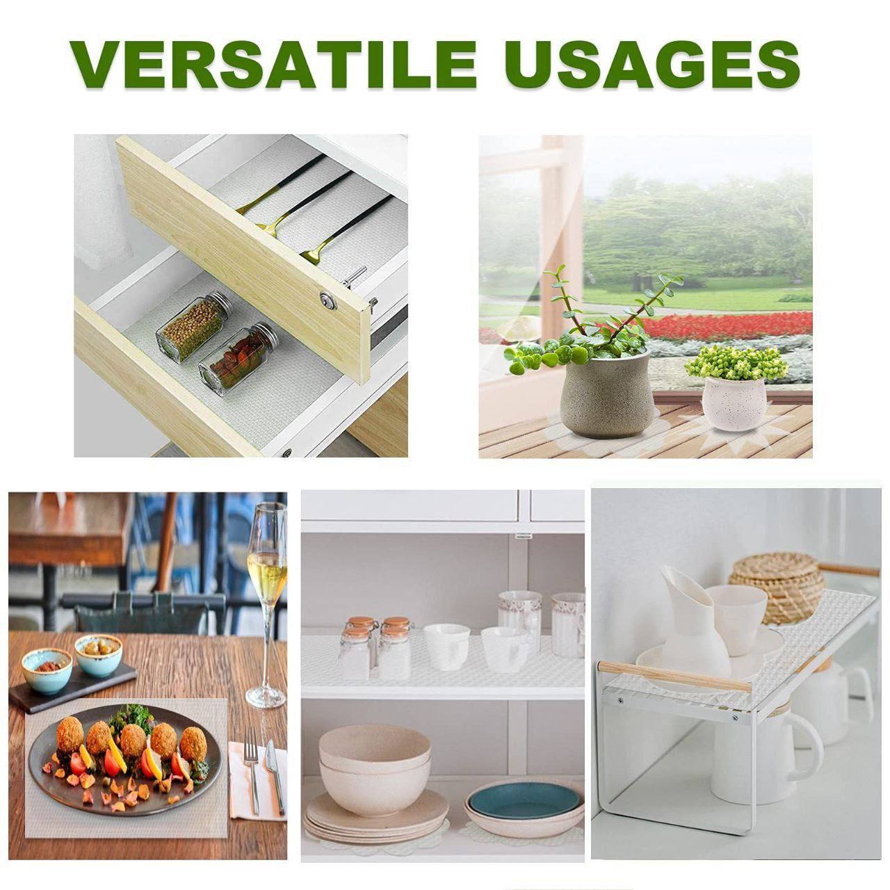 Alacenas y estantes: Proporciona una superficie limpia y estable para frascos de especias, platos y tazas, evitando que la humedad o los residuos ensucien directamente el mueble.