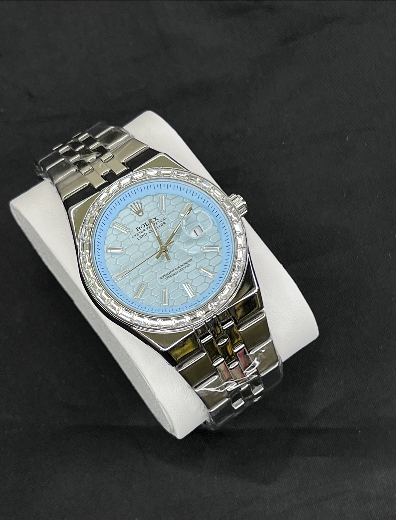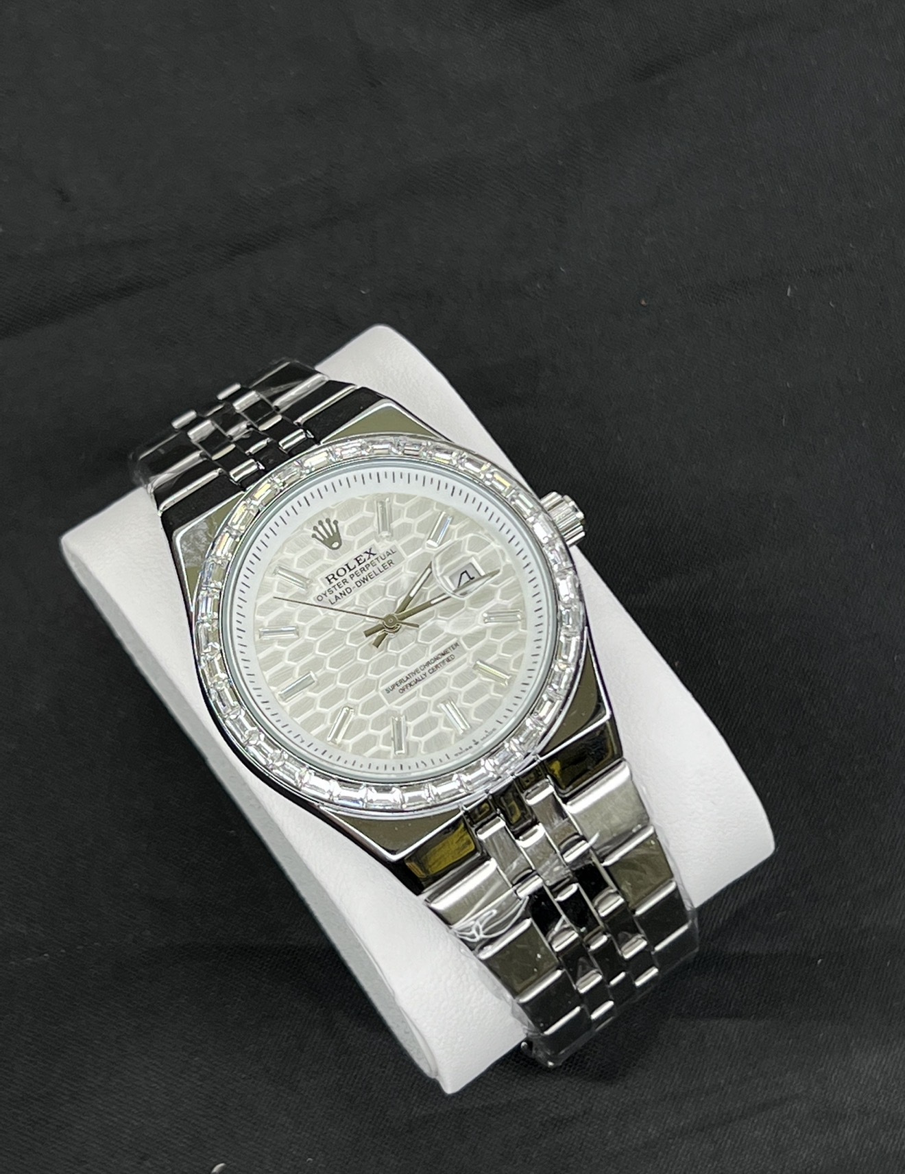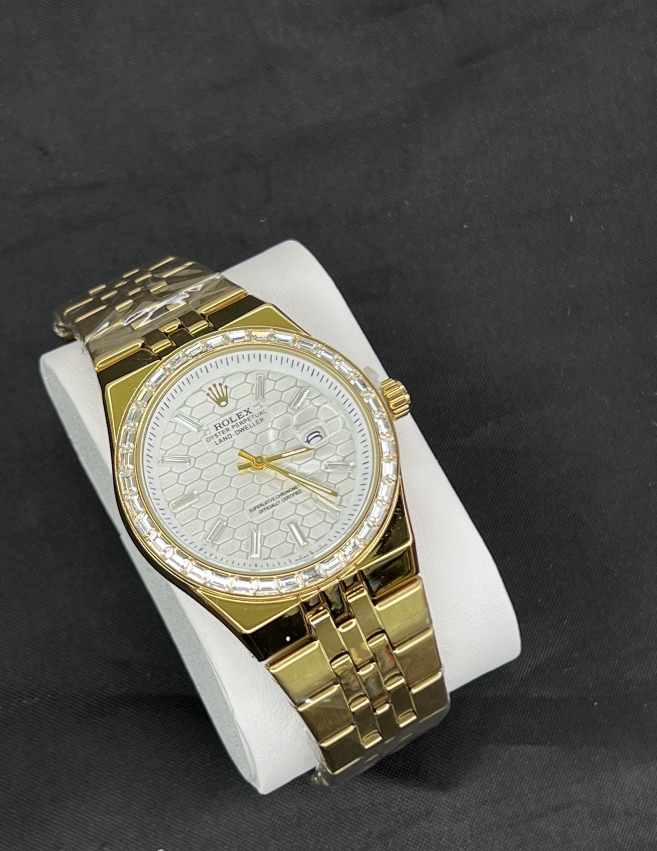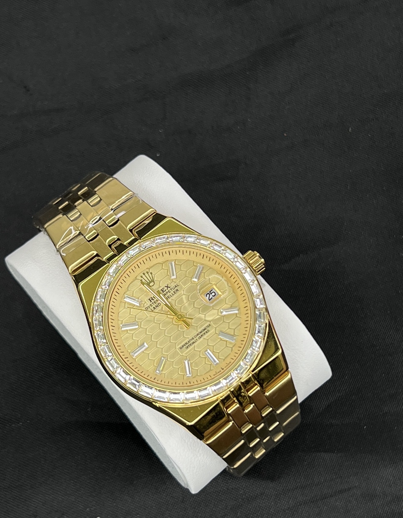 Este reloj combina un diseño clásico con detalles modernos, destacando su bisel con incrustaciones brillantes que le dan una apariencia sofisticada y de alta gama. Ideal para quienes buscan un accesorio elegante que complemente cualquier outfit.