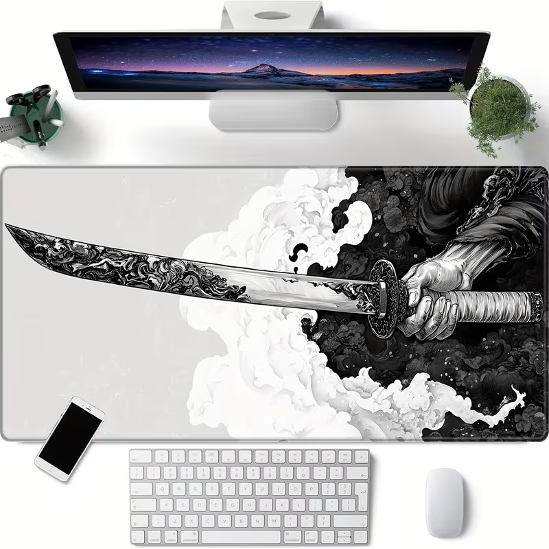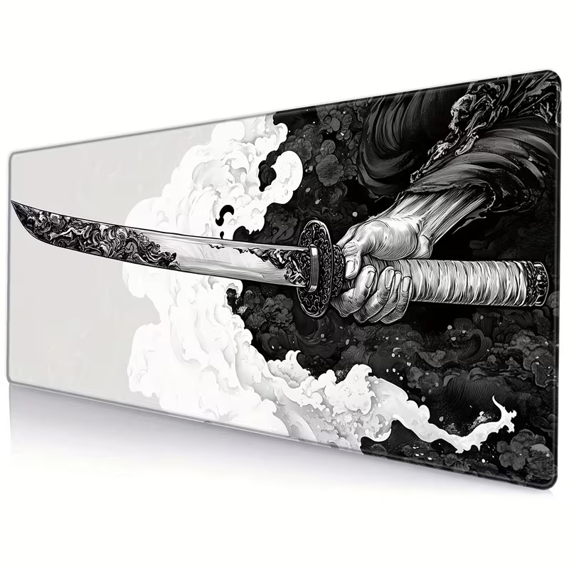 Alfombrilla para mouse gamer extra grande con diseño de espada de samurái japonesa - 80.01 x 29.97 cm, bordes cosidos para mayor durabilidad, tapete de escritorio de caucho natural