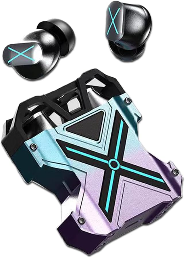 - Diseño Gamer Agresivo: Su estética futurista y los detalles en azul brillante en los auriculares y el estuche de carga le dan un aspecto inconfundiblemente gamer.