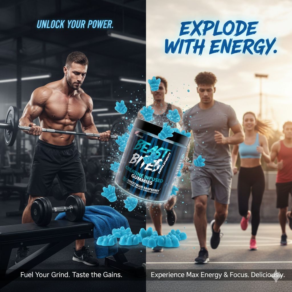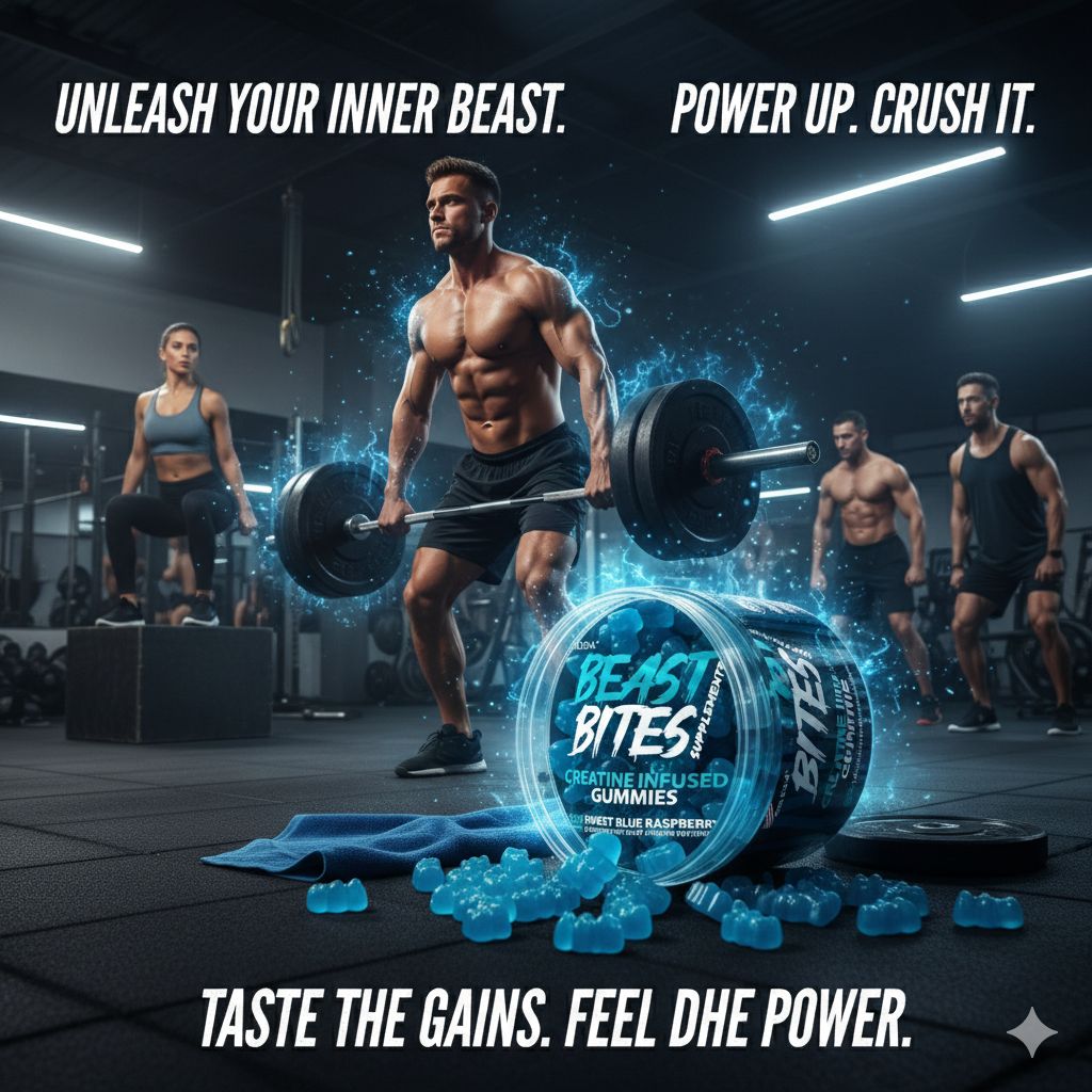 💥 BEAST BITES™ – Creatina en Gummies | Blue Raspberry | 350 g
