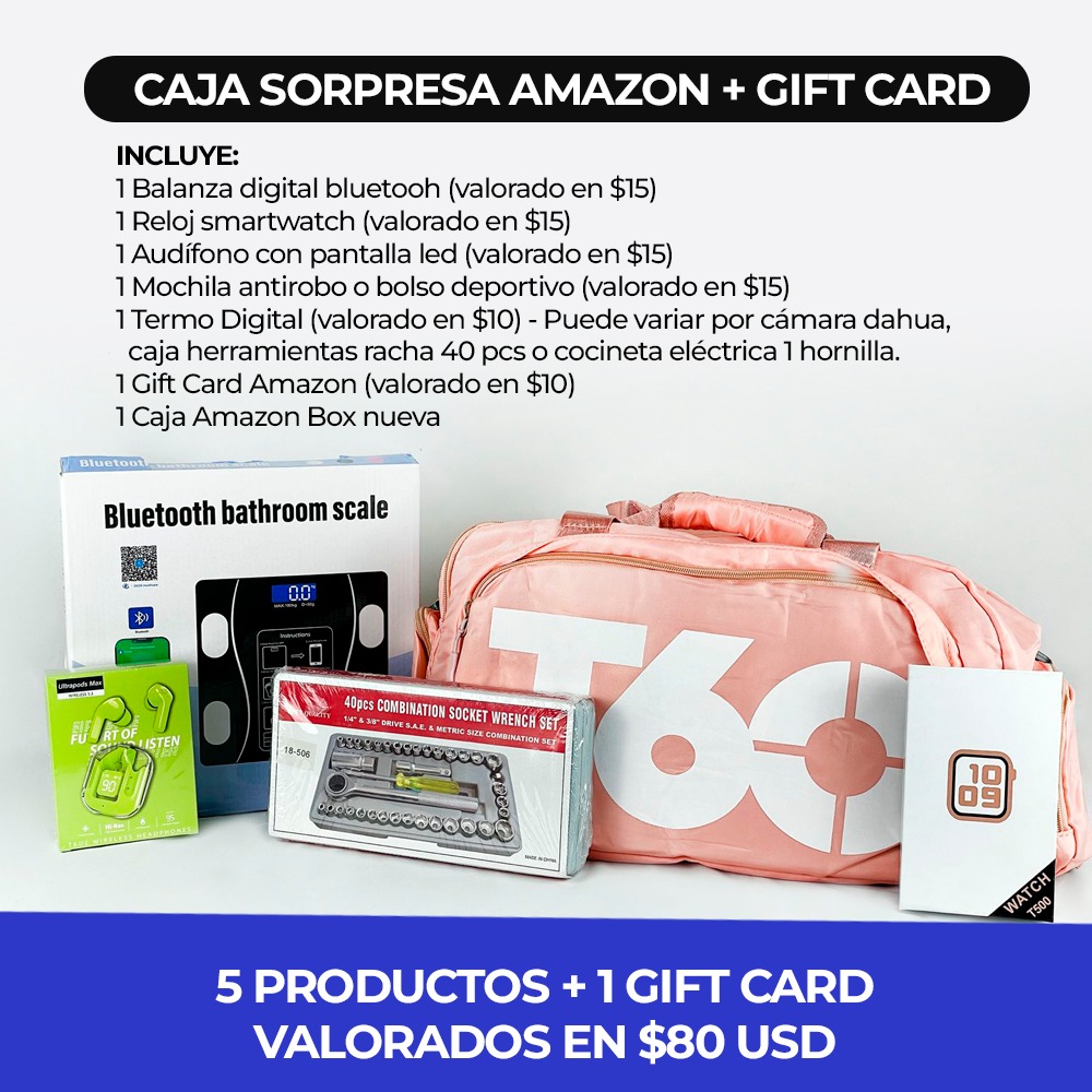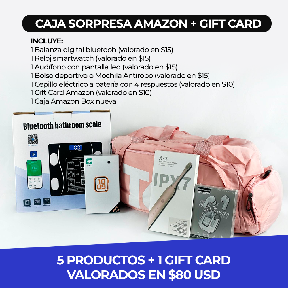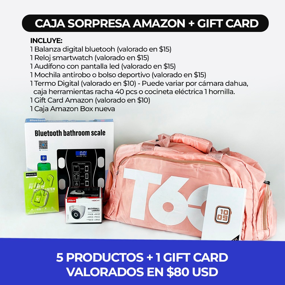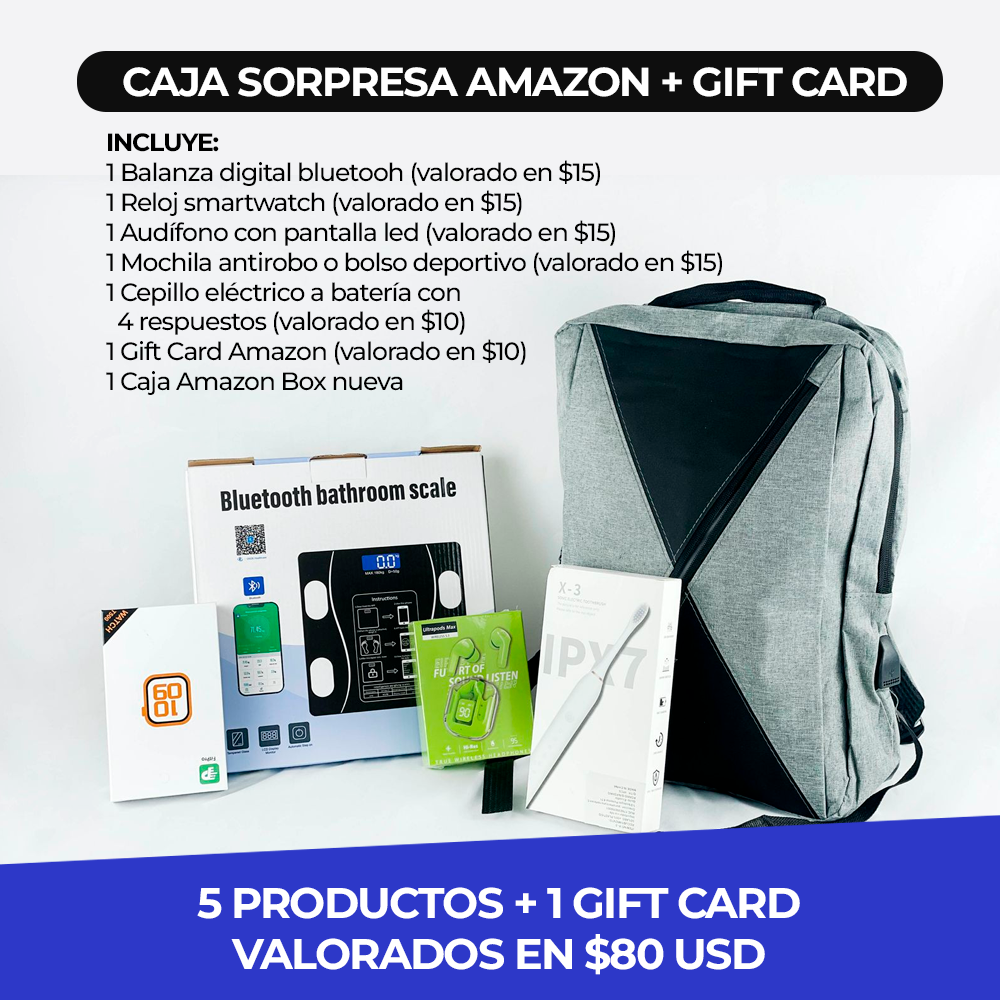 Caja real con isotipo de Amazon incluye una GIFT CARD para que tus clientes se sientan tranquilos.