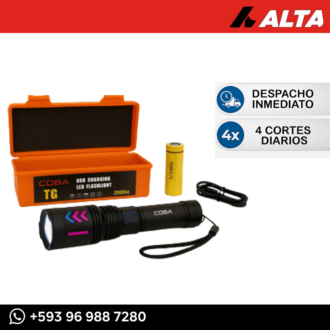 Ilumina cualquier situación con potencia y confianza. La linterna COBA modelo TG combina resistencia, versatilidad y comodidad en un solo producto: