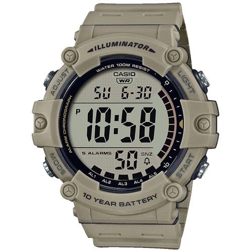 El Casio AE-1500 es un reloj digital de estilo robusto (similar a G-Shock) conocido por su gran pantalla LCD de fácil lectura, excelente relación calidad-precio y una batería de larga duración. Destaca por su resistencia al agua de 100 metros, cronómetro, 5 alarmas y un diseño ligero de resina. Características Principales del Casio AE-1500 Original: Batería de larga duración: Aproximadamente 10 años de autonomía (batería CR2032). Resistencia al agua: 100 metros (10 ATM / 10 bar), apto para natación y uso diario. Pantalla y Diseño: Pantalla LCD de gran tamaño (diseño amplio). Diseño estilo protrek o G-Shock con caja de resina y cristal acrílico protegido por el bisel. Funciones: Cronómetro de 1/100 segundos. Hora dual (ideal para viajes). 5 alarmas multifunción. Temporizador de cuenta regresiva (hasta 24 horas). Calendario automático completo (hasta el año 2099). Iluminación: Luz LED (Illuminator). Dimensiones y Peso: Caja de resina de 54.4 mm × 51.2 mm × 15.7 mm y peso ligero de aproximadamente 57 g