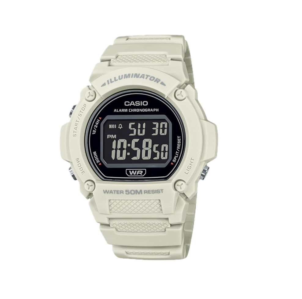 Tamaño Mediano Calendario Calendario automático (fijado en 28 días para febrero) Cristal resina Cronómetro Cronómetro de 1/100 segundos Capacidad de medición: 59'59.99" Modos de medición: Tiempo transcurrido, tiempo de división, tiempos de 1ª y 2ª posiciones Fuente de Alimentación Batería Garantía Máquina 1 año Material de la Caja resina Material de la Correa resina Medida de la Caja 48.1 × 47 × 13.9 mm Movimiento Digital Peso 40 g Resistencia al Agua 50Mts. Tipo de Resistencia Es posible ducharse y bañarse con este reloj.