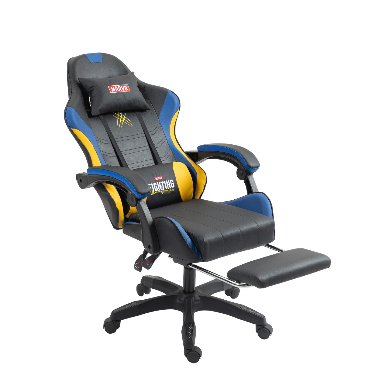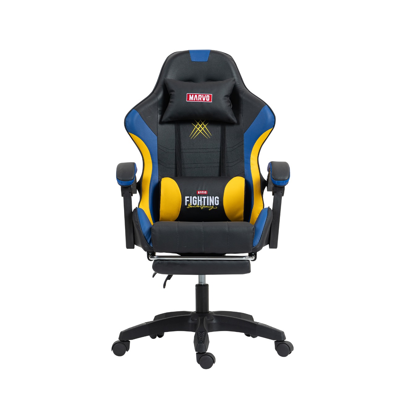Disfruta de la máxima comodidad con la Silla Gamer Marvo CH-25 Amarilla, diseñada con estilo ergonómico y materiales de alta calidad. Cuenta con respaldo reclinable hasta 155°, sistema de elevación de gas de 100 mm, base de nailon resistente y ruedas silenciosas. Incluye cojín lumbar y reposacabezas para un soporte total. Soporta hasta 150 kg, perfecta para gamers o trabajo prolongado.